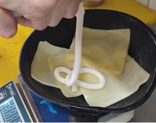 Ponemos el sartén a temperatura media en el fogón, con todos los ingredientes anteriores para que tomen calor, se derritan y se integren formando una mezcla homogénea, cremosa y elástica con el queso mozzarella.