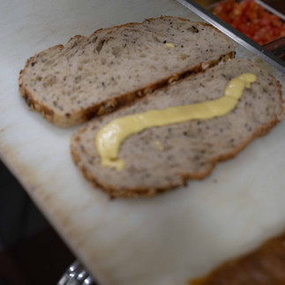 Una vez saquemos las 2 tajadas de pan del horno, le ponemos a las 2 tapas la salsa Mundo Verde.